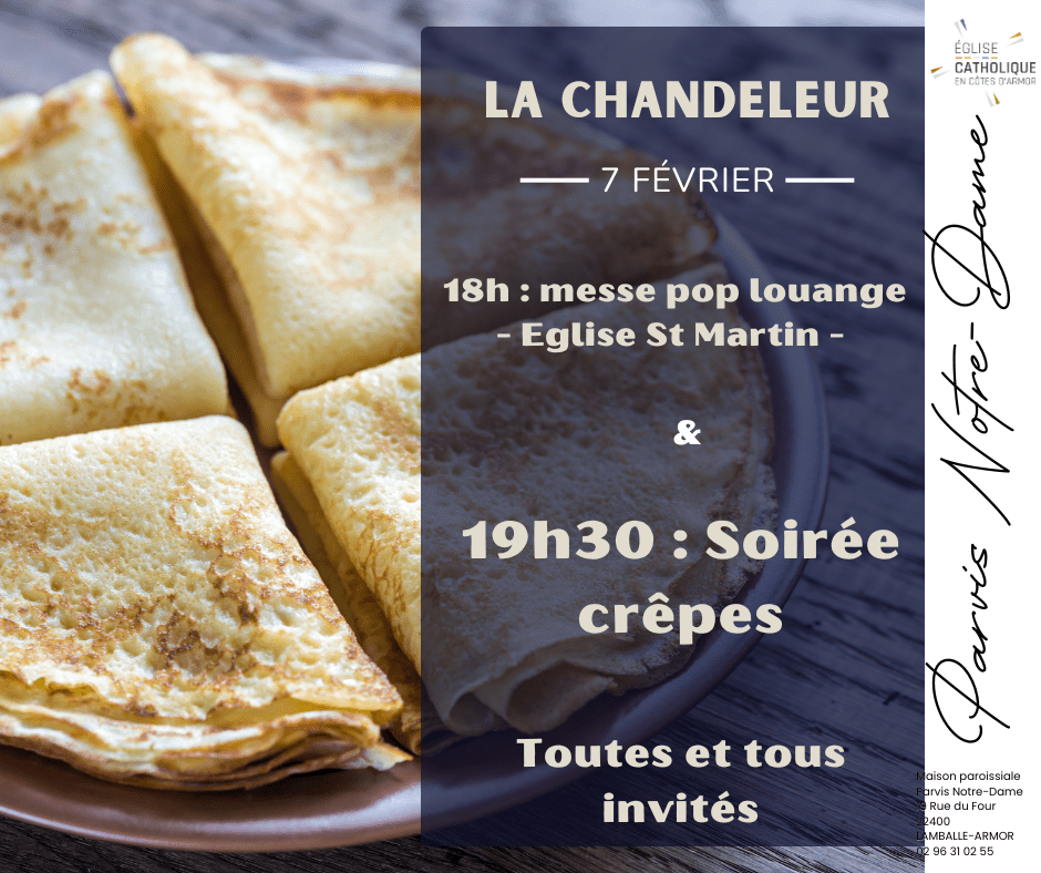 Messe du samedi 31 janvier 2026, 18 h, Maison de Moncontour et dimanche 1er février, 10 h 30, Saint-Trimoël