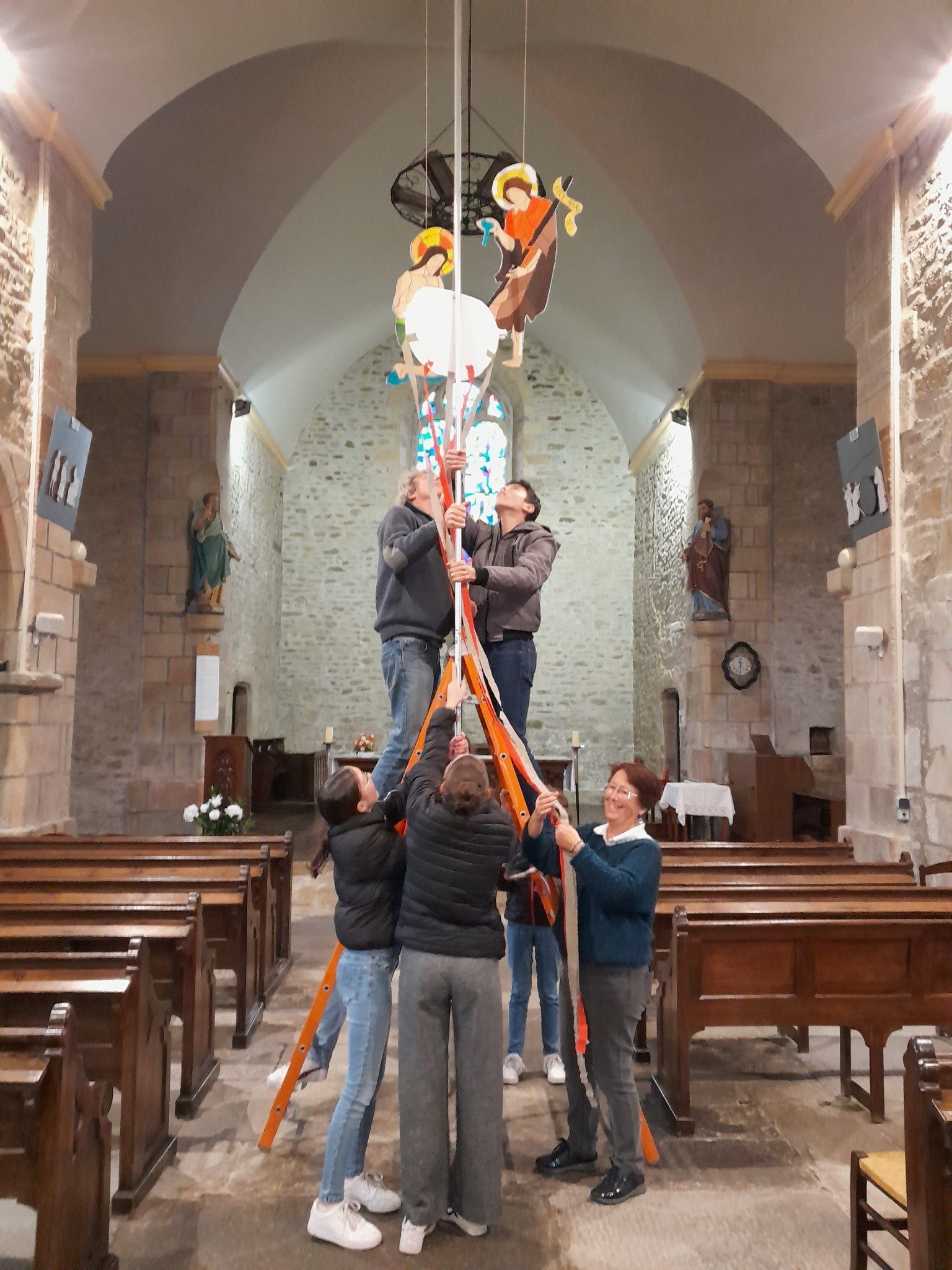 – réalisation d’un mobile qui a été installé au milieu de l’église de Plestan.