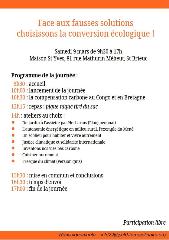 Programme de la journée et inscription : ccfd-terresolidaire.org/face-aux-fausses-solutions-choisissons-la-conversion-ecologique-st-brieuc-22