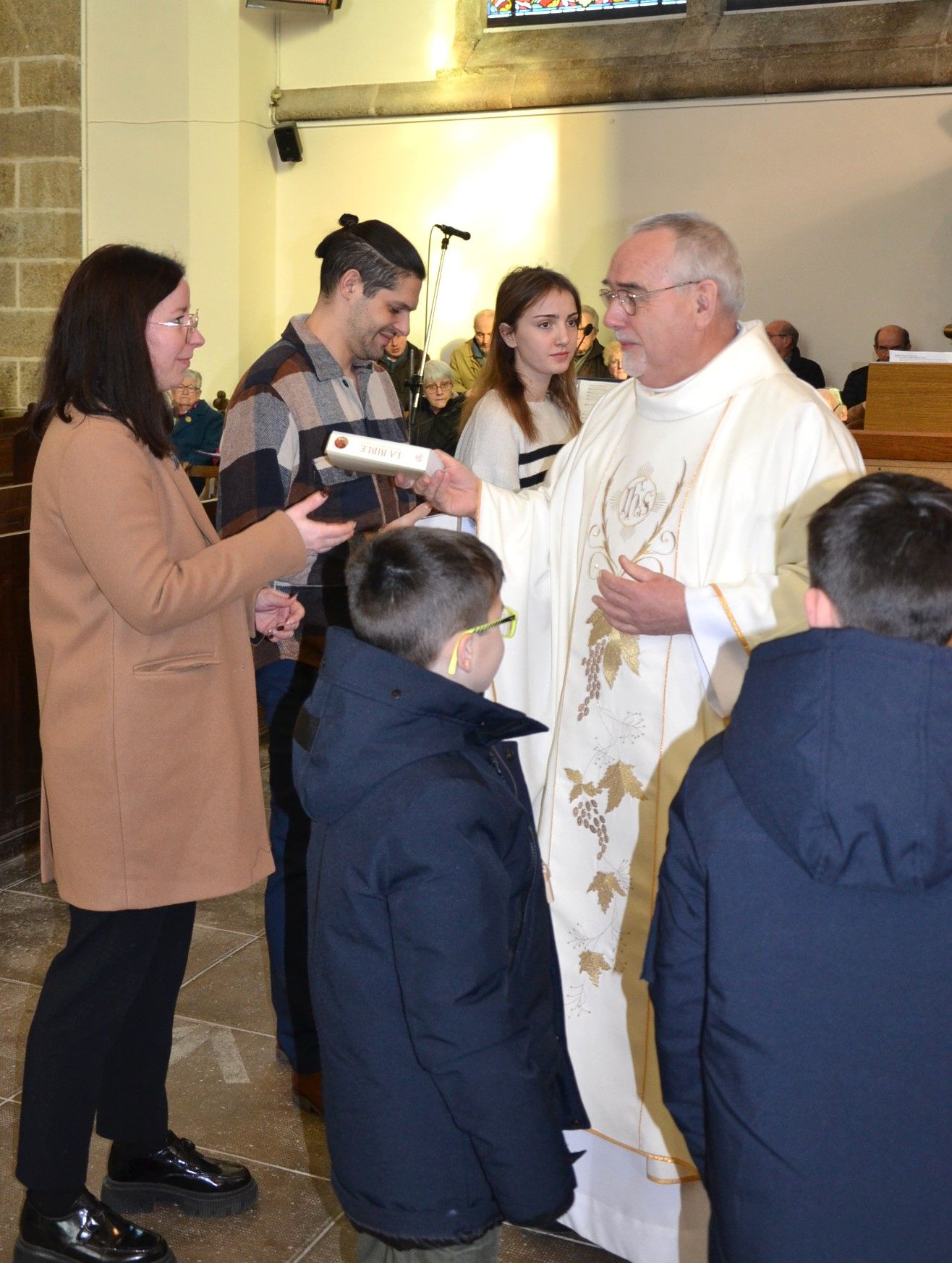 Remise de la Bible aux cinq catéchumènes