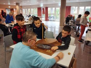 Après le déjeuner, les enfants ont passé l’après-midi à jouer aux jeux de société avec les résidents du foyer-logement.