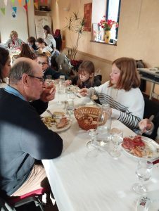 Samedi 1er février, les jeunes de nos deux paroisses qui se préparent à célébrer l’étape de la profession de foi se sont retrouvés chez les Sœurs de Saint Thomas à Lamballe. Après un goûter « crêpes », ils se sont remémorés les séances de catéchèse passées grâce au Time’s up préparé par Maud, une de leurs catéchistes.