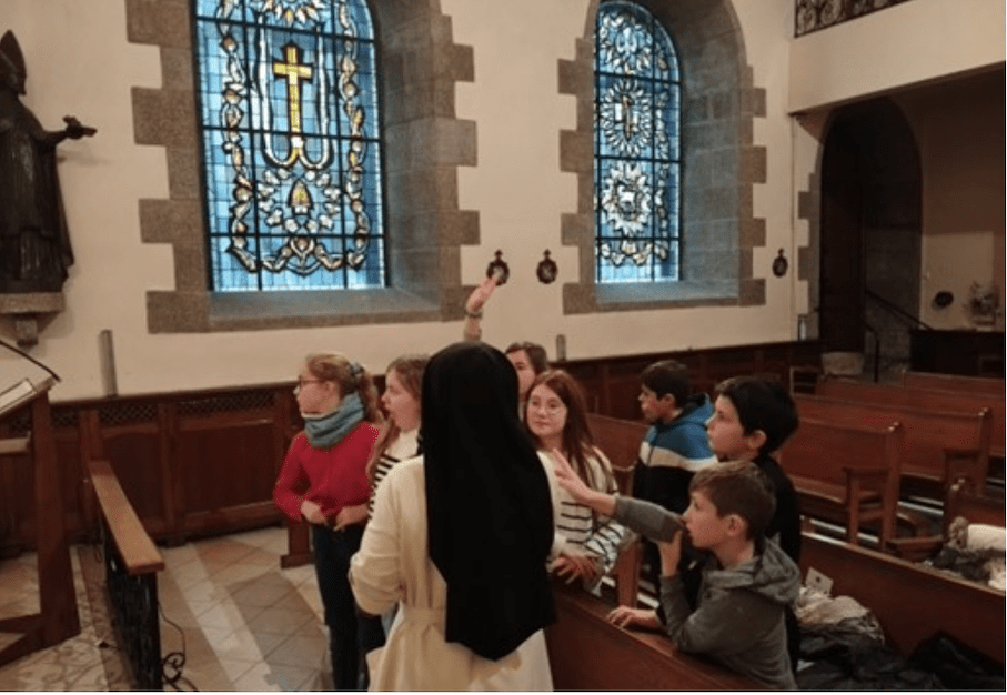Après avoir vécu la messe à la chapelle des sœurs de Saint Thomas de Villeneuve, les enfants ont écouté avec intérêt Sœur Marie-Odile et Sœur Noëlly. Elles ont partagé l’histoire de leur fondateur.