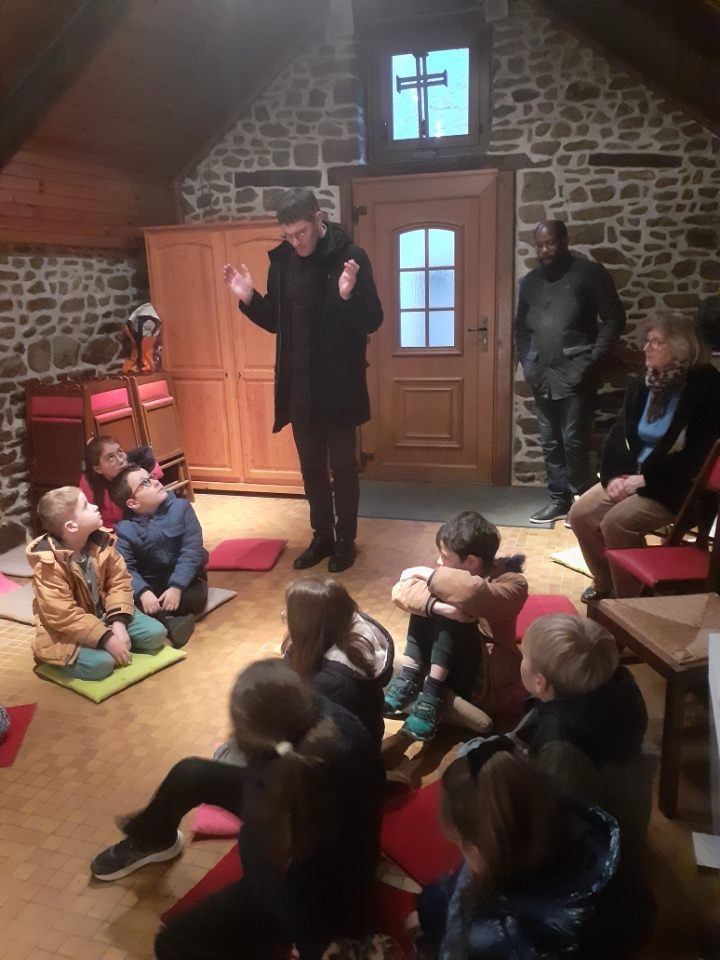 Après avoir vécu la messe à la chapelle Saint Thomas, Sœur Marie-Odile et Sœur Noélie ont accueilli les enfants et partagé l’histoire d’Ange Le Proust et de leur communauté. En début d’après-midi, Maryvonne Cantin et Bernadette Coupé ont témoigné auprès des enfants en partageant leur mission pour Présence fraternelle au foyer logement du Gouessant. Leur témoignage a captivé l’attention des enfants : un simple bonjour est témoignage de notre foi en Jésus Christ.