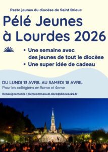 A l’issue de la prochaine messe en famille du dimanche 8 mars 2026, à l’église de Quessoy, les jeunes qui partiront à Lourdes en pèlerinage